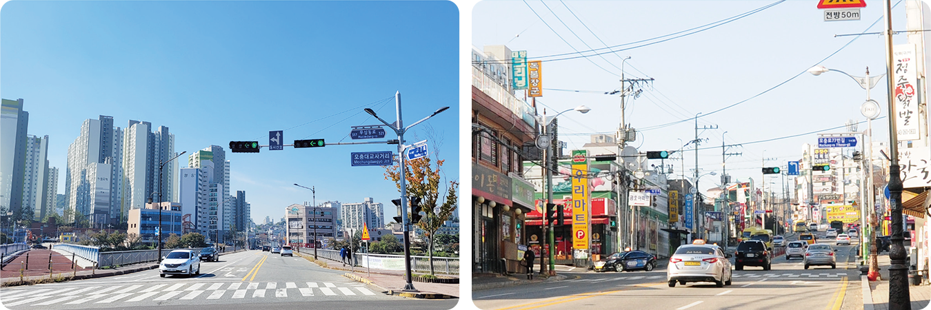 다리를 건너자마자 눈앞에 펼쳐지는 동네가 바로 모충동이다.