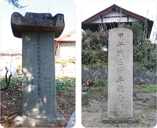 모충사 경내에는 당시 충청병마절도사였던 홍재희(洪在羲; 홍계훈)의 치적을 기리기 위한 선정비와 갑오전망장졸기념비가 아래위로 서있으며,
