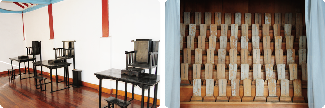 사당 안에는 중앙에 진남영 영관 염도희, 대관 이종구, 교장 박춘빈의 위패와 왼쪽에 병사들의 위패가 있다.